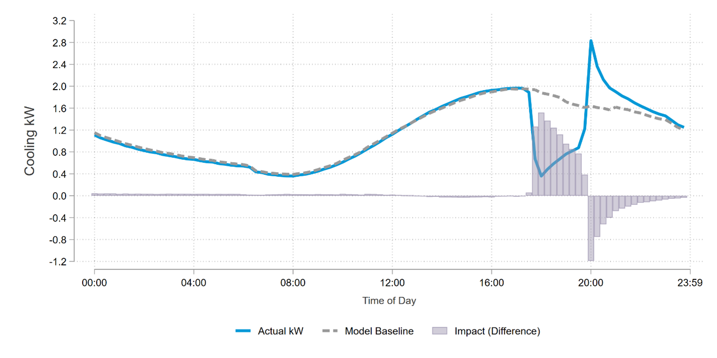 In each case, we converted thermostat runtime data to demand estimates using region-specific connected load assumptions and calculated impacts as the difference between the baselines and actual consumption during the event windows.